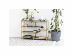 Bibliothèque Ouverte Sireine 4 étagères En Mdf Et Métal – Dorée Et Noir
