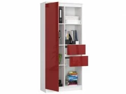 Brima – Bibliothèque Bureau Style Moderne Salon – 80x180x35 – 1 Porte+2 Tiroirs – Rouge