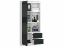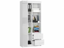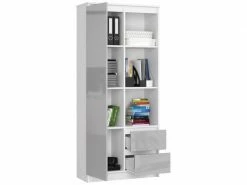 Brima – Bibliothèque Bureau Style Moderne Salon – 80x180x35 – 1 Porte+2 Tiroirs – Blanc
