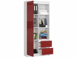 Brita – Bibliothèque Bureau Style Moderne Salon – 80x180x35 – 2 Tiroirs+1 Porte – Rouge