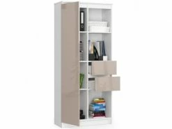 Brita – Bibliothèque Bureau Style Moderne Salon – 80x180x35 – 2 Tiroirs+1 Porte – Beige