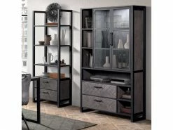 Bibliothèque 2 Tiroirs 3 étagères Chêne Cendré/métal – Duc – L 75 X L 42 X H 200 – Neuf