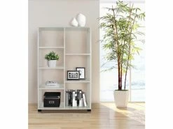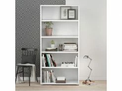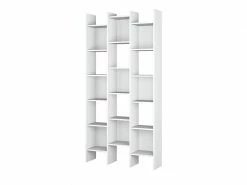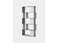 Bibliothèque Avec 5 étagères Asymétriques, Blanc Et Gris, Dimensions 80 X 175 X 29,5 Cm