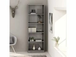 Icaverne – Bibliothèques Famille Bibliothèque à 5 Niveaux Gris Brillant 60x24x175 Cm Aggloméré