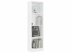 Superbe étagères Edition Basseterre Bibliothèque à 4 Niveaux Blanc Brillant 40x24x142 Cm Aggloméré