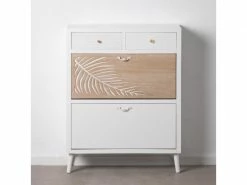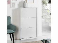 TOUSMESMEUBLES Meuble à Chaussures 3 Abattants Blanc – Kalu – L 64 X L 18 X H 121.5 – Neuf