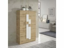 TOUSMESMEUBLES Meuble à Chaussures 2 Portes Chêne Blond – Youya – L 74 X L 33.6 X H 128 – Neuf