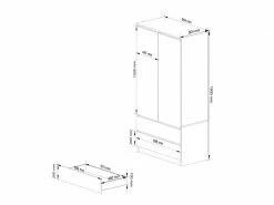 Akord Armoire S90 Chêne Sonoma 90 Cm 2 Portes 2 Tiroirs Couleur Blanc Mat, 4 étagères – 90x51x180 Cm