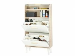 TOUSMESMEUBLES Meuble à Chaussures à Rideau Blanc – Shoes N°3 – L 58 X L 36 X H 121 – Neuf