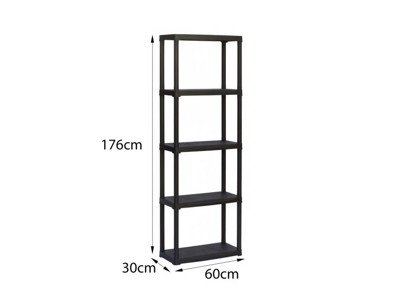 ÉTAGÈRE LINÉAIRE – Étagère ouverte à trois étagères, entièrement de couleur anthracite. STRUCTURE ET UTILISATION – Étagères avec étagères intégrées conçues pour supporter de grosses charges: chaque étagère est renforcée avec des barres de fer pour augmenter sa capacité – Produit parfait pour une utilisation à l’intérieur comme à l’extérieur, vous pouvez ranger tous vos articles de manière ordonnée – Parfait pour une utilisation en extérieur , comme un balcon, une terrasse, un jardin et une cour, à la fois à l’intérieur, comme cave, débarras et sous les escaliers. CARACTÉRISTIQUES TECHNIQUES – Produit entièrement fabriqué avec du plastique recyclé, italien, 100% recyclable – Produit éco-durable entièrement construit en polypropylène, matériau antichoc, résistant au froid et aux rayons UV, aux intempéries, aux huiles et aux solvants, n’absorbe pas les odeurs et ne retient pas humidité – L’assemblage est rapide et facile – Entièrement lavable. 100% MADE IN ITALY – La production durable 100% italienne garantit fiabilité, résistance et durabilité dans le temps l’attention portée aux processus de production: le choix de matières premières de qualité, le souci du détail et l’attention à l’environnement et à la nature font de ce produit un travail noble. CERTIFICATIONS ET DIMENSIONS DU PRODUIT – Ce produit est certifié CE, IPRT – PSV mixeco, TÜV, PEFC et MOCA – Dimensions du produit en cm: 60x30h176 – Kg supporté par étagère 30