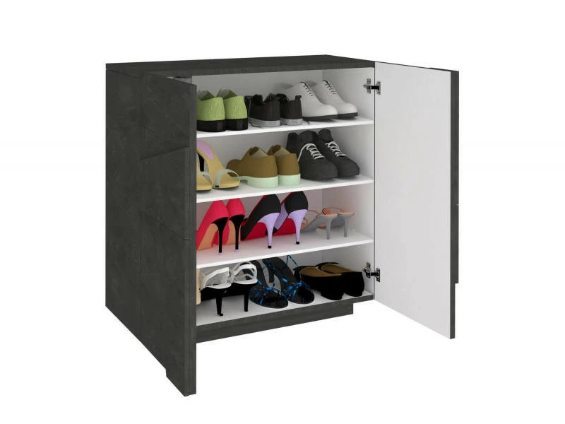 MODERN SHOE RACK: Meuble à chaussures moderne avec deux portes battantes avec un design géométrique en relief à l’extérieur, la structure est entièrement en gris cendré – Fonctionnel et innovant, parfait pour décorer des environnements avec des besoins d’espace avec un seul modèle élégant et fonctionnel. STRUCTURE ET UTILISATION: Pratique et élégant, c’est la solution parfaite si placé dans un environnement moderne, il est très spacieux grâce à la structure à deux portes battantes, c’est une excellente solution peu encombrante – À l’intérieur, les portes battantes ont un total de quatre étagères spacieuses – Portes équipées de charnières métalliques solides et durables. PRATIQUE ET INNOVANT: Son design moderne et élégant rend ce meuble à chaussures avec portes parfait pour être placé dans un environnement moderne et lumineux: c’est le produit idéal pour ceux qui recherchent une armoire fonctionnelle et peu encombrante pour leur maison – La couleur gris cendré est très moderne et en même temps s’adapte facilement à tout type d’environnement. 100% MADE IN ITALY: La production 100% italienne garantit fiabilité, résistance, confort et durabilité dans le temps l’attention portée aux processus de production, le choix des matières premières de qualité et le souci du détail font de ce produit une fabrication noble. CARACTÉRISTIQUES TECHNIQUES : Fabriqué entièrement en stratifié, il résiste aux chocs et aux rayures, et est durable dans le temps – Nettoyage rapide et facile grâce à la matière dont il est fait – Livré démonté avec kit et livret d’instructions de montage – Soin et attention particulière à l’emballage , résistant et adapté au transport – Dimensions en cm : 81x38h86