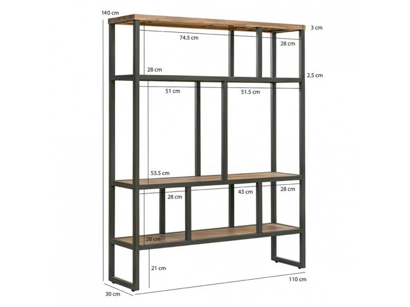 Apportez un style à la fois industriel et naturel à votre intérieur ! Cette étagère vous permettra d’exposer des objets de décoration, des livres ou tout autres objets sur ses compartiments ouverts de différentes tailles. Ses étagères en bois d’acacia sont parfaitement mises en avant par la structure en métal gris anthracite, l’alliance de ces matériaux est plus que parfaite ! Elle apportera du cachet à votre intérieur et il vous permettra de délimiter vos espaces. Sa teinte douce vous permettra de la placer dans n’importe quelle pièce de chez vous, chambre, bureau, salon, salle à manger. Disposez également des objets de décoration au-dessus afin de parfaire votre intérieur.