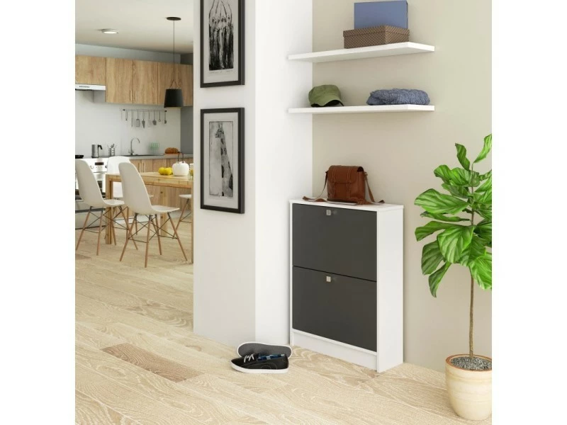 ARMOIRE À CHAUSSURES DEANNA 2 Une proposition idéale pour les personnes qui apprécient d’avoir de beaux meubles dans leur appartement. Il a une porte battante. Petit meuble à chaussures. ● 3xEliving DEANNA Meuble à chaussures 2 BLANC / GRAPHITE – Meuble à chaussures à deux compartiments, il conviendra à toutes vos chaussures ● L’armoire à chaussures élégante et moderne est la solution idéale pour ceux qui disposent d’un petit espace utilisable dans leur environnement et qui, en même temps, ne veulent pas renoncer à l’ordre et à la propreté des chaussures. ● Marque : 3xEliving ● Couleur : BLANC / GRAPHITE ● Dimensions : Hauteur : 80 cm, Largeur : 60 cm, Profondeur : 20 cm ● Matériau : panneau de particules MDF ● FABRICANT DE MEUBLES : Akord Contenu du colis : ● 1 × Meuble à armoire a chaussures ● 1 × manuel d’utilisation ● Accessoires de montage. MATÉRIEL meuble d entree: Corps et façades – panneaux de particules mélaminés, épaisseur 16 mm. Bords – finis en plastique ABS (caractérisé par une résistance mécanique et chimique élevée) Attention! • En raison des paramètres du moniteur, les couleurs du produit reçu peuvent être légèrement différentes. • Les meubles pour entrée sont emballés dans des cartons, si vous n’avez aucune expérience dans le montage des meubles, veuillez faire appel à un professionnel. • Les meubles chaussures endommagés lors du montage ne sont pas sujets à réclamation. • La meuble à chaussures entrée est envoyé au client en 1 colis. • Meuble chaussure destiné à être monté soi-même : il est livré à l’adresse indiquée par le client avec une notice de montage claire et lisible, ainsi qu’un jeu d’accessoires certifiés nécessaires au montage. »