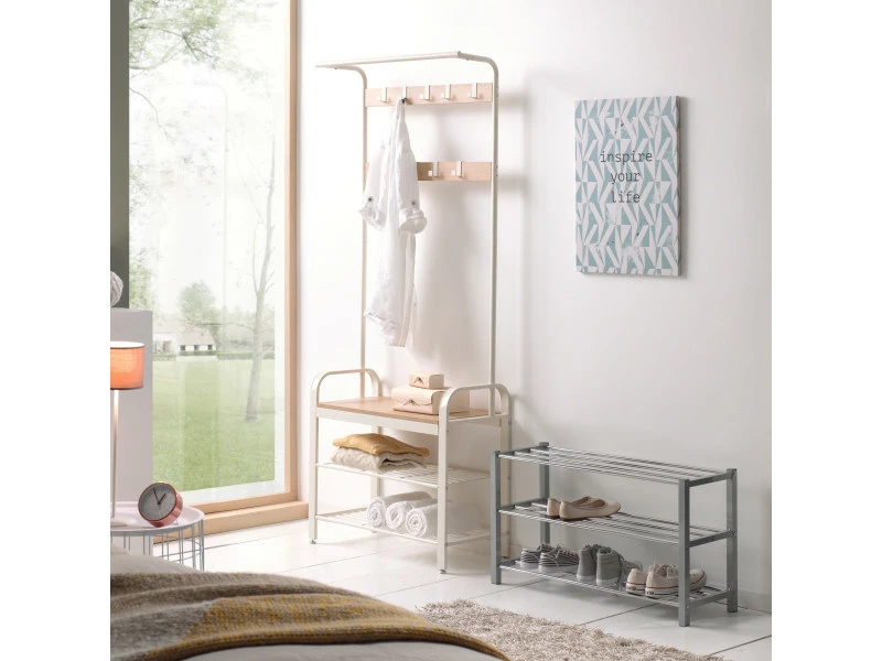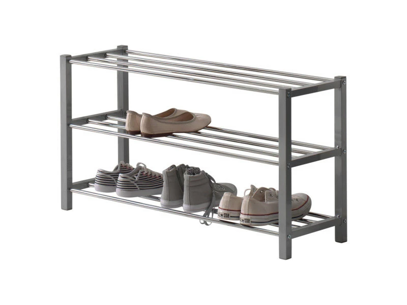 Est-ce que vous laissez parfois traĂ®ner vos chaussures ? Vous n’avez pas d’endroit permanent oĂą toute la famille peut se rĂ©unir ? Alors ce meuble Ă chaussures est l’accessoire parfait ! Fonctionnel, solide et pas trop cher. Il comporte trois niveaux diffĂ©rents, ce qui permet de collecter une douzaine de paires de chaussures. De plus, cet accessoire d’ameublement est parfaitement adaptĂ© pour prouver son utilitĂ© fonctionnelle dans plusieurs pièces. Sera-t-il placĂ© dans votre hall d’entrĂ©e, votre chambre Ă coucher ou votre dressing ? Le choix vous appartient ! CaractĂ©ristiques: – Coloris: Gris, couleur mĂ©tallique – MatĂ©riau: mĂ©tal – Dimensions: 80x28x45cm ( Longueur x Profondeur x Hauteur) – Montage: Montage facile grâce Ă la notice de montage livraison: – 1 x Ă©tagère Ă chaussures