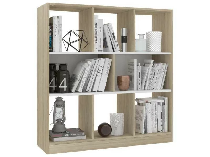 ICAVERNE Admirable Étagères collection Koweït Bibliothèque Blanc et chêne sonoma 97,5×29,5×100 cm Aggloméré Dotée d’un design élégant et classique, cette bibliothèque ajoutera une touche décorative et pratique à votre décoration. Le meuble est fabriqué en carton de qualité, ce qui lui assure solidité, durabilité et longévité. Conçue avec 8 compartiments spacieux , la bibliothèque offre un grand espace de rangement pour ranger et tenir à portée de main vos magazines, livres, DVD, appareils multimédias et autres objets de décoration. L’étagère à livres est facile à nettoyer avec un chiffon humide. Cette bibliothèque est facile à assembler avec des matériaux de montage inclus. Couleur : Blanc et chêne sonoma Matériau : aggloméré Dimensions : 97,5 x 29,5 x 100 cm (l x P x H) Avec 8 grands compartiments Matériaux de montage inclus