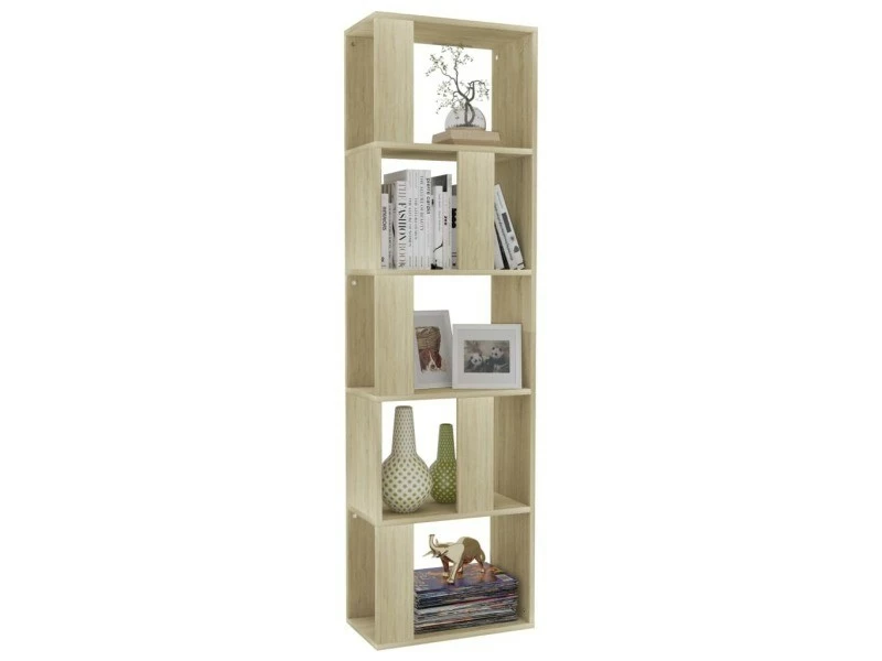 ICAVERNE Admirable Étagères ensemble Brasilia Bibliothèque/Séparateur de pièce Chêne sonoma 45x24x159 cm Dotée d’un design élégant et classique, cette bibliothèque ajoutera une touche décorative et pratique à votre décoration. Le meuble est fabriqué en carton de qualité, ce qui lui assure solidité, durabilité et longévité. Conçue avec 5 compartiments spacieux , la bibliothèque offre un grand espace de rangement pour ranger et tenir à portée de main vos magazines, livres, DVD, appareils multimédias et autres objets de décoration. En outre, car elle est une étagère polyvalente, elle peut également servir de séparateur de pièce, ce qui en fait le choix idéal pour votre couloir et tout autre espace de vie. L’étagère à livres est facile à nettoyer avec un chiffon humide. Cette bibliothèque est facile à assembler avec des matériaux de montage inclus. Couleur : chêne sonoma Matériau : aggloméré Dimensions : 45 x 24 x 159 cm (l x P x H) Avec 5 grands compartiments Également utilisable comme séparateur de pièce Matériaux de montage inclus