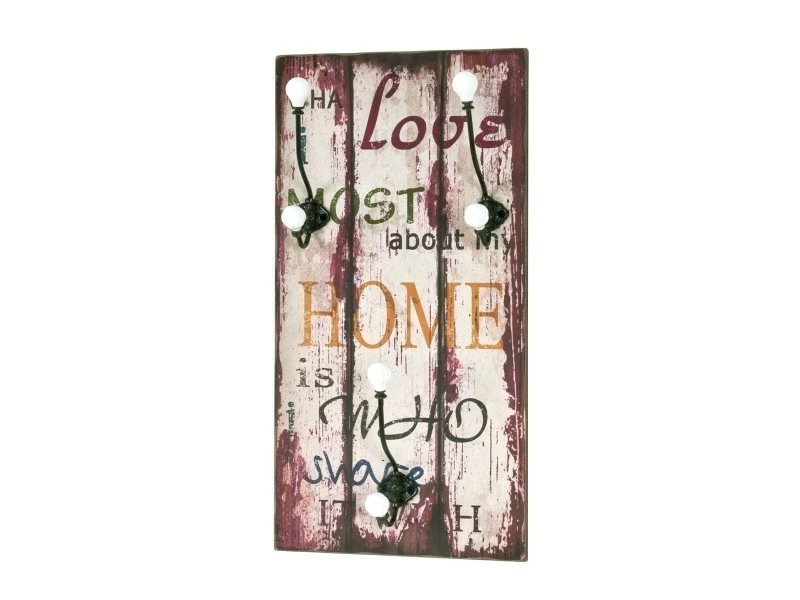 Admirable NUANCEMEUBLE garderobe murale Londres multicolore L30 x P12 x H60 cm en MDF style vintage, 3 crochets en métal noir et boutons céramique blanc 2.9kg
