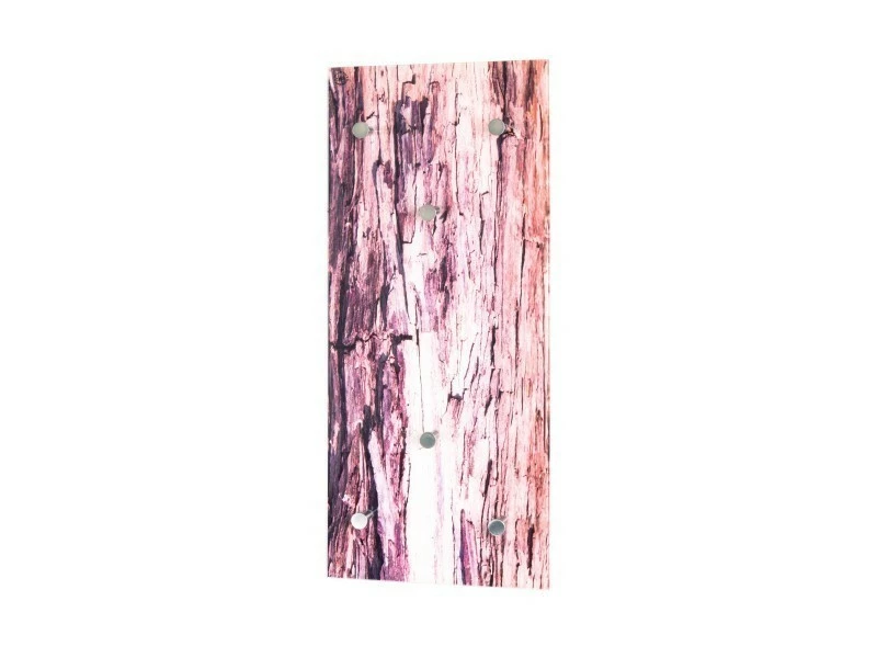 Admirable NUANCEMEUBLE garderobe murale Santiago multicolore L30 x P5 x H70 cm en verre trempé avec motif imprimé (l’écorce), 6 crochets en optique inox 3.2kg