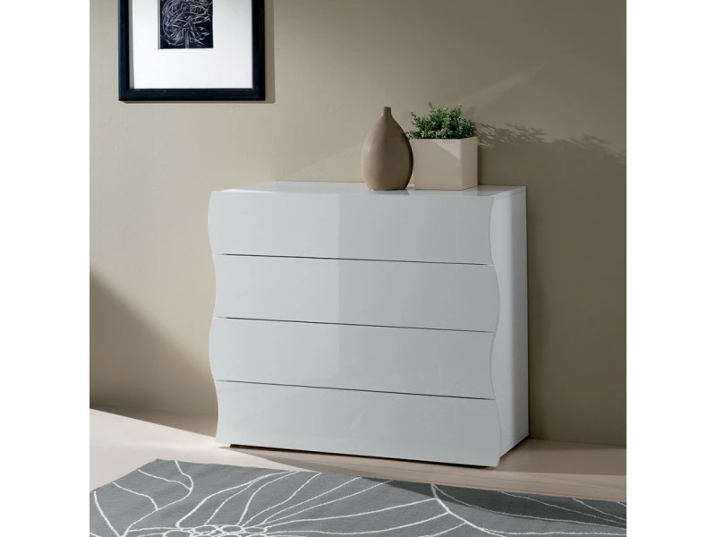 La commode Onda Draw est le choix parfait si vous voulez mettre de l’ordre et rendre votre chambre plus élégante. Cette commode au design 100% Made in Italy et au style intemporel est fabriquée en bois de qualité certifié FSC solide et résistant, elle convient à chaque chambre mais trouve facilement sa place dans différentes pièces de la maison grâce à sa couleur laquée blanche brillante. La structure est en mélaminé et les portes des tiroirs coulissants ont une ligne ondulée caractéristique qui permet à la commode de s’adapter parfaitement à la fois dans le salon et dans la chambre. Les 4 grands tiroirs coulissent facilement sur les glissières métalliques et offrent un rangement confortable et ordonné de vos vêtements tels que pulls, chemises, sous-vêtements ou linge de lit. Sa composition lui permet d’être utilisée comme buffet moderne dans le salon ou comme meuble bas dans le bureau pour ranger des documents et des dossiers ou pour meubler élégamment les murs du couloir en utilisant l’agréable surface d’appui pour afficher des photos ou des décorations, placer des lampes, des bibelots, des vases avec des fleurs, des cosmétiques, des bijoux et tout autre élément dans la maison. Découvrez tous les accessoires de la même ligne et rehaussez le ton moderne de vos meubles. ProduceShop sélectionne uniquement les meilleurs produits pour chaque catégorie en fonction de caractéristiques qualitatives et esthétiques dans le but de ne distribuer sur le marché que des articles qui satisfont pleinement les besoins de ses clients. Caractéristiques techniques : Dimensions : 1000 x 400 x 815 mm (largeur, profondeur, hauteur) Produit de qualité 100% Made in Italy Structure en bois certifié FSC Surface en mélaminé laqué blanc brillant Commode avec 4 tiroirs coulissants en forme de vague caractéristique Glissières métalliques résistantes et de haute qualité Design simple et moderne qui peut être combiné avec tout type d’intérieur Réalisation avec le souci du détail Commode décorative et fonctionnelle pour plusieurs environnements Idéale pour une chambre, un salon, une entrée, un bureau ou d’autres espaces Kit de montage fourni Instructions simples et détaillées
