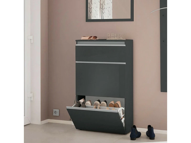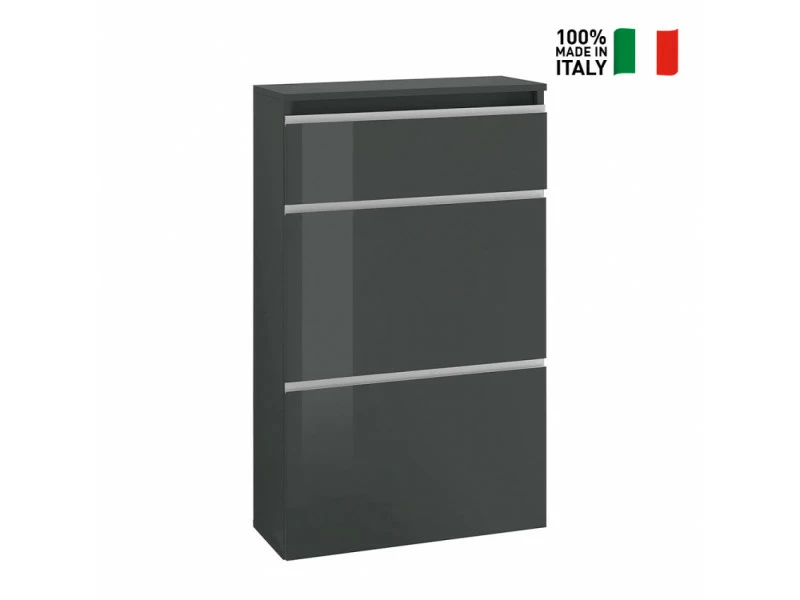 Dire adieu au désordre c’est facile avec le meuble à chaussures 2 portes Magic Bata Ardesia : ranger ses chaussures de manière ordonnée sera un jeu d’enfant ! Fabriqué entièrement en Italie avec des matériaux de haute qualité par la marque spécialisée AHD, ce meuble est la solution peu encombrante la plus appréciée des clients de ProduceShop pour son design moderne et sa polyvalence. Spacieux et robuste, ce meuble peut contenir jusqu’à 12 paires de chaussures et, grâce à sa petite taille, il peut être placé partout où un coin libre est créé, afin d’optimiser à 100% l’espace disponible. La structure en bois certifié FSC a une finition en mélaminé couleur ardoise brillant qui confère au meuble à chaussures une élégance incomparable : en plus des deux grandes portes rabattables (chacune équipée d’une cloison de séparation), il y a aussi un compartiment avec une ouverture vasistas où il est possible de conserver les produits utilisés pour le nettoyage des chaussures. Le montage est très simple et peut être réalisé sans problème par une seule personne en suivant pas à pas les instructions fournies dans l’emballage. ProduceShop sélectionne uniquement les meilleurs produits pour chaque catégorie en fonction de caractéristiques qualitatives et esthétiques dans le but de ne distribuer sur le marché que des articles qui satisfont pleinement les besoins de ses clients. Caractéristiques techniques : Meuble à chaussures 2 portes Magic Bata Ardesia Dimensions : 60 x 26,5 x 108 cm (largeur, longueur, hauteur) Couleur : ardoise laquée brillante Poids : 28 kg 100% Made in Italy Design moderne et élégant Capacité : 12 paires de chaussures Matériau en bois FSC Finition en mélaminé Charnières en métal Deux portes principales avec une ouverture rabattable Compartiment supérieur avec une ouverture vasistas Instructions et kit de montage fournis Facile à assembler : une seule personne est nécessaire Excellent rapport qualité/prix