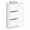 Si vous cherchez une solution d’ameublement pour ranger vos chaussures, Avalyne est définitivement faite pour vous. Grâce à ses dimensions peu encombrantes et aux multiples espaces qu’elle offre, l’armoire à chaussures Avalyne d’AHD vous aidera à ranger vos chaussures, mais aussi à conserver les nombreux accessoires que vous utilisez au quotidien. Derrière les confortables portes battantes à charnières amorties, cette armoire à chaussures propose 5 étagères sur lesquelles placer de 15 à 18 paires de chaussures, tandis que le tiroir supérieur qui glisse facilement sur les rails métalliques fait office de vide-poches pratiques et permet de ranger les accessoires et objets divers. L’armoire à chaussures est fabriquée en bois robuste et finie en mélamine de haute épaisseur, ce qui la rend résistante aux rayures et en même temps facile à nettoyer. Les poignées en aluminium qui émergent sur la finition facilitent l’ouverture des 2 portes tandis que les pieds en ABS offrent une stabilité maximale de la structure. Le design moderne et la profondeur réduite lui permettent de se combiner avec n’importe quel style de mobilier et de la placer là où elle est le plus nécessaire dans la maison : que ce soit dans l’entrée, dans la chambre ou dans la salle de bain, l’armoire à chaussures Avalyne éliminera l’encombrement pour vous aider à optimiser les espaces de manière esthétique et pratique ! ProduceShop sélectionne uniquement les meilleurs produits pour chaque catégorie en fonction de caractéristiques strictement qualitatives et esthétiques dans le but de ne distribuer sur le marché que des articles capables de satisfaire pleinement les besoins de ses clients. Caractéristiques techniques de l’armoire à chaussure Avalyne : Dimensions : 63 x 33 x 95 cm (largeur, profondeur, hauteur) Structure avec 2 portes battantes et 1 tiroir coulissant Matériau bois avec finition mélaminé et panneau MDF Capacité : 15-18 paires de chaussures 5 étagères horizontales réglables en hauteur Charnières rembourrées et rails métalliques durables Poignées en aluminium Pieds en ABS antidérapant et résistant aux rayures Design moderne avec une finition de haute qualité Meuble à chaussures facilement adaptable à n’importe quel mur Kit de fixation murale Nettoyage facile