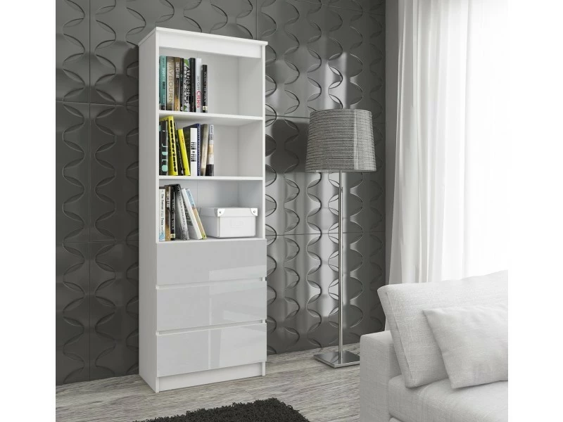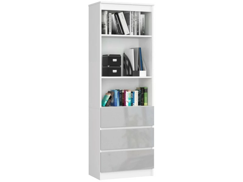 Bibliothèque de bureau, Étagère pour les livres et classeurs avec le système sans poignée (CLP). Cette bibliothèque est un meuble spacieux pour le tri des documents. De grands espaces pourront accueillir des classeurs A4, des livres et d’autres choses indispensables pour le bureau. Le design qui correspond à notre système CLP moderne suit la tendance commune de la minimisation stylistique. La conception modulaire permet d’acheter les differents modeles des biblioteques afin de completer le bureau conformement a vos attentes. Un meuble conçu pour s’accorder parfaitement avec les autres meubles de cette série. Nous vous encourageons à consulter nos autres produits. Possibilité de composer tout un ensemble de mobilier pour le séjour, la chambre, la chambre d’enfants et d’adolescent, ainsi qu’un studio et un bureau.