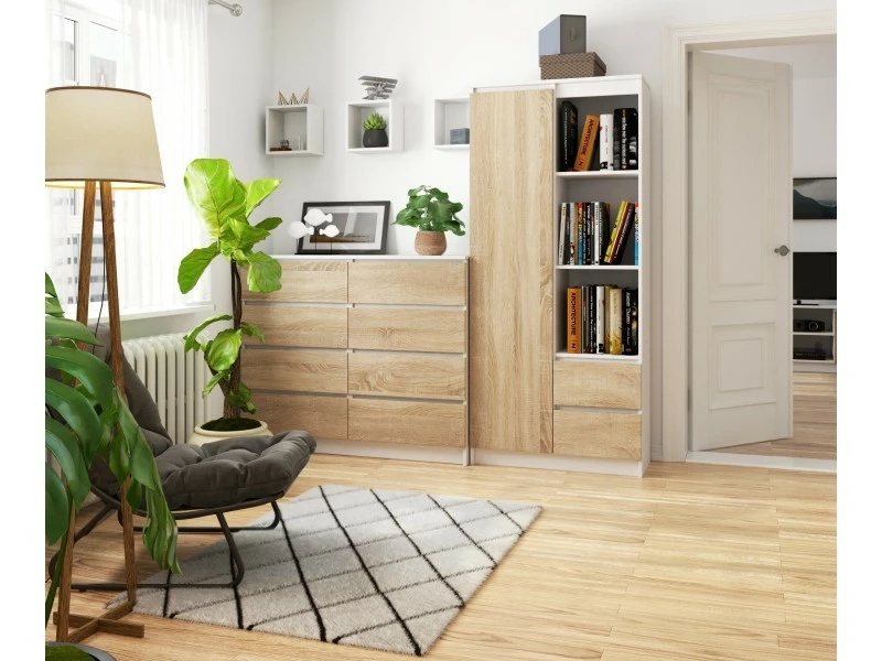 Bibliothèque de bureau, Étagère pour les livres et classeurs avec le système sans poignée (CLP). Cette bibliothèque est un meuble spacieux pour le tri des documents. De grands espaces pourront accueillir des classeurs A4, des livres et d’autres choses indispensables pour le bureau. Le design qui correspond à notre système CLP moderne suit la tendance commune de la minimisation stylistique. La conception modulaire permet d’acheter les differents modeles des biblioteques afin de completer le bureau conformement a vos attentes. Un meuble conçu pour s’accorder parfaitement avec les autres meubles de cette série. Nous vous encourageons à consulter nos autres produits. Possibilité de composer tout un ensemble de mobilier pour le séjour, la chambre, la chambre d’enfants et d’adolescent, ainsi qu’un studio et un bureau.