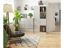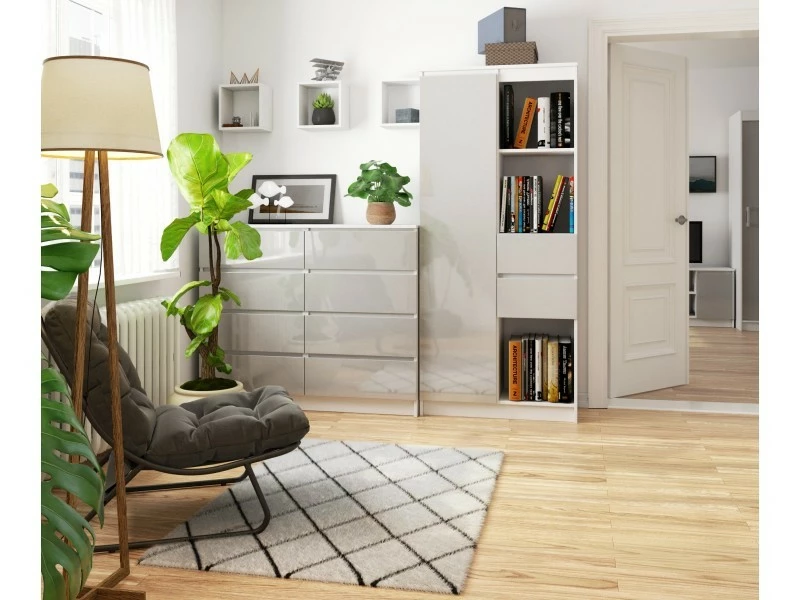 Bibliothèque de bureau, Étagère pour les livres et classeurs avec le système sans poignée (CLP). Cette bibliothèque est un meuble spacieux pour le tri des documents. De grands espaces pourront accueillir des classeurs A4, des livres et d’autres choses indispensables pour le bureau. Le design qui correspond à notre système CLP moderne suit la tendance commune de la minimisation stylistique. La conception modulaire permet d’acheter les differents modeles des biblioteques afin de completer le bureau conformement a vos attentes. Un meuble conçu pour s’accorder parfaitement avec les autres meubles de cette série. Nous vous encourageons à consulter nos autres produits. Possibilité de composer tout un ensemble de mobilier pour le séjour, la chambre, la chambre d’enfants et d’adolescent, ainsi qu’un studio et un bureau.