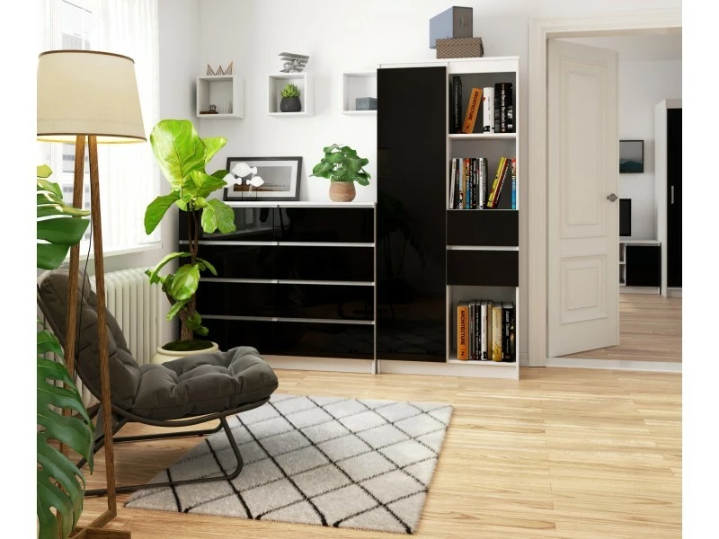 Bibliothèque de bureau, Étagère pour les livres et classeurs avec le système sans poignée (CLP). Cette bibliothèque est un meuble spacieux pour le tri des documents. De grands espaces pourront accueillir des classeurs A4, des livres et d’autres choses indispensables pour le bureau. Le design qui correspond à notre système CLP moderne suit la tendance commune de la minimisation stylistique. La conception modulaire permet d’acheter les differents modeles des biblioteques afin de completer le bureau conformement a vos attentes. Un meuble conçu pour s’accorder parfaitement avec les autres meubles de cette série. Nous vous encourageons à consulter nos autres produits. Possibilité de composer tout un ensemble de mobilier pour le séjour, la chambre, la chambre d’enfants et d’adolescent, ainsi qu’un studio et un bureau.