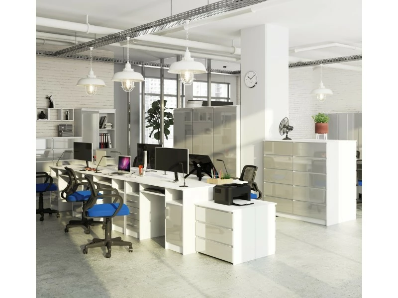 Bibliothèque de bureau, Étagère pour les livres et classeurs avec le système sans poignée (CLP). Cette bibliothèque est un meuble spacieux pour le tri des documents. De grands espaces pourront accueillir des classeurs A4, des livres et d’autres choses indispensables pour le bureau. Le design qui correspond à notre système CLP moderne suit la tendance commune de la minimisation stylistique. La conception modulaire permet d’acheter les differents modeles des biblioteques afin de completer le bureau conformement a vos attentes. Un meuble conçu pour s’accorder parfaitement avec les autres meubles de cette série. Nous vous encourageons à consulter nos autres produits. Possibilité de composer tout un ensemble de mobilier pour le séjour, la chambre, la chambre d’enfants et d’adolescent, ainsi qu’un studio et un bureau.