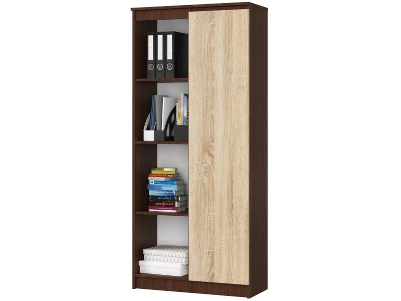 Bibliothèque de bureau, Étagère pour les livres et classeurs avec le système sans poignée (CLP). Cette bibliothèque est un meuble spacieux pour le tri des documents. De grands espaces pourront accueillir des classeurs A4, des livres et d’autres choses indispensables pour le bureau. Le design qui correspond à notre système CLP moderne suit la tendance commune de la minimisation stylistique. La conception modulaire permet d’acheter les differents modeles des biblioteques afin de completer le bureau conformement a vos attentes. Un meuble conçu pour s’accorder parfaitement avec les autres meubles de cette série. Nous vous encourageons à consulter nos autres produits. Possibilité de composer tout un ensemble de mobilier pour le séjour, la chambre, la chambre d’enfants et d’adolescent, ainsi qu’un studio et un bureau.