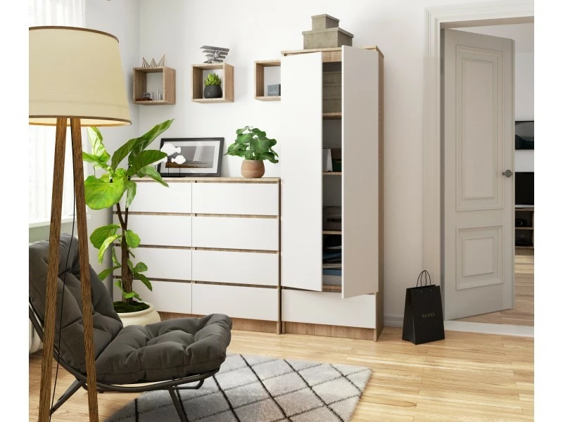 Bibliothèque de bureau, Armoire pour les livres et classeurs avec le système sans poignée (CLP). Cette bibliothèque est un meuble spacieux pour le tri des documents. De grands espaces pourront accueillir des classeurs A4, des livres et d’autres choses indispensables pour le bureau. Le design qui correspond à notre système CLP moderne suit la tendance commune de la minimisation stylistique. La conception modulaire permet d’acheter les differents modeles des biblioteques afin de completer le bureau conformement a vos attentes. Un meuble conçu pour s’accorder parfaitement avec les autres meubles de cette série. Nous vous encourageons à consulter nos autres produits. Possibilité de composer tout un ensemble de mobilier pour le séjour, la chambre, la chambre d’enfants et d’adolescent, ainsi qu’un studio et un bureau.