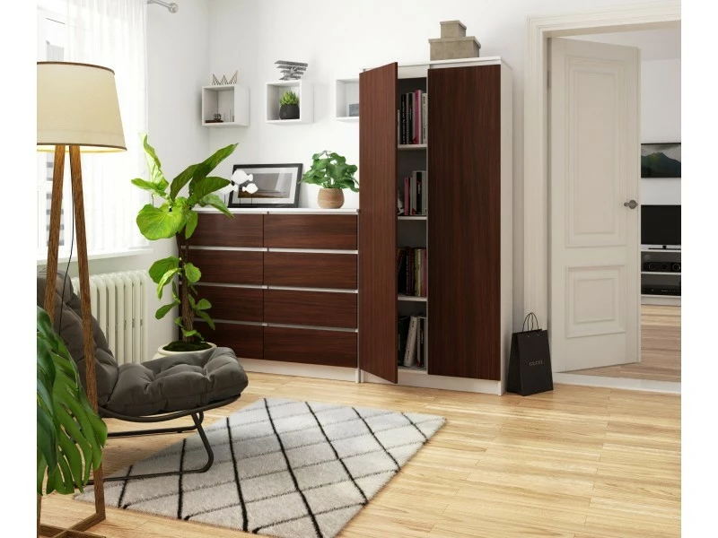 Bibliothèque de bureau, Armoire pour les livres et classeurs avec le système sans poignée (CLP). Cette bibliothèque est un meuble spacieux pour le tri des documents. De grands espaces pourront accueillir des classeurs A4, des livres et d’autres choses indispensables pour le bureau. Le design qui correspond à notre système CLP moderne suit la tendance commune de la minimisation stylistique. La conception modulaire permet d’acheter les differents modeles des biblioteques afin de completer le bureau conformement a vos attentes. Un meuble conçu pour s’accorder parfaitement avec les autres meubles de cette série. Nous vous encourageons à consulter nos autres produits. Possibilité de composer tout un ensemble de mobilier pour le séjour, la chambre, la chambre d’enfants et d’adolescent, ainsi qu’un studio et un bureau.