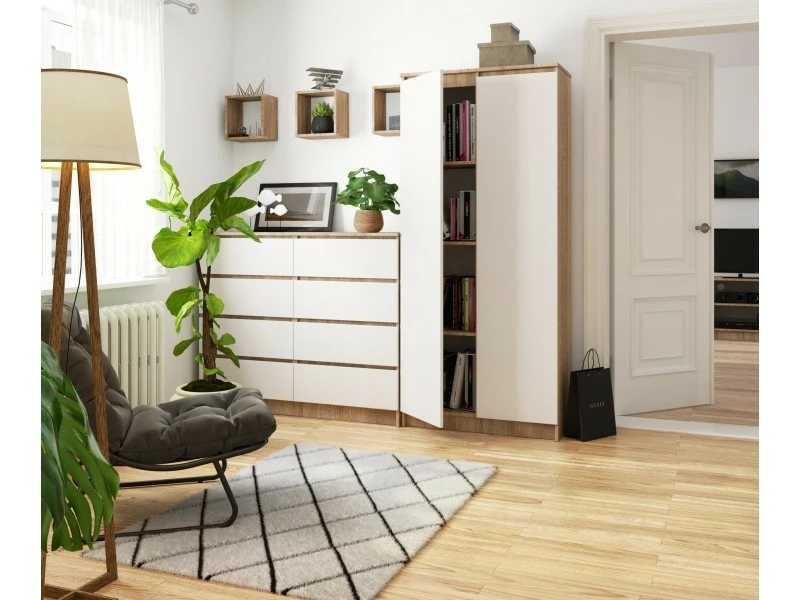 Bibliothèque de bureau, Armoire pour les livres et classeurs avec le système sans poignée (CLP). Cette bibliothèque est un meuble spacieux pour le tri des documents. De grands espaces pourront accueillir des classeurs A4, des livres et d’autres choses indispensables pour le bureau. Le design qui correspond à notre système CLP moderne suit la tendance commune de la minimisation stylistique. La conception modulaire permet d’acheter les differents modeles des biblioteques afin de completer le bureau conformement a vos attentes. Un meuble conçu pour s’accorder parfaitement avec les autres meubles de cette série. Nous vous encourageons à consulter nos autres produits. Possibilité de composer tout un ensemble de mobilier pour le séjour, la chambre, la chambre d’enfants et d’adolescent, ainsi qu’un studio et un bureau.