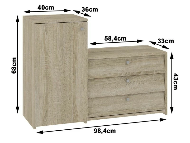 Meuble à chaussures, meuble d’ entrée, armoire avec commode, 98,4 cm, mat,
