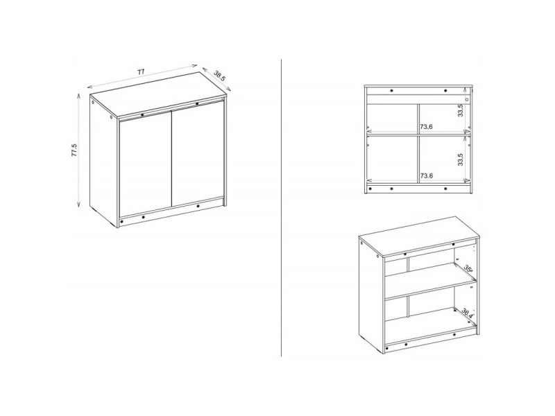 Largeur 77 cm Hauteur 77.5 cm Profondeur 38.5 cm