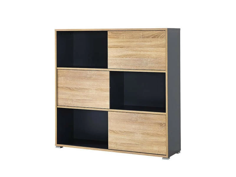 Profondeur en CM : 35 / Hauteur en CM : 119 / Structure : MDF / Poids : 44.5kg / Revêtement : Laminé gris et chêne sonoma / A monter : Oui / Garantie : 2 ans