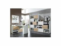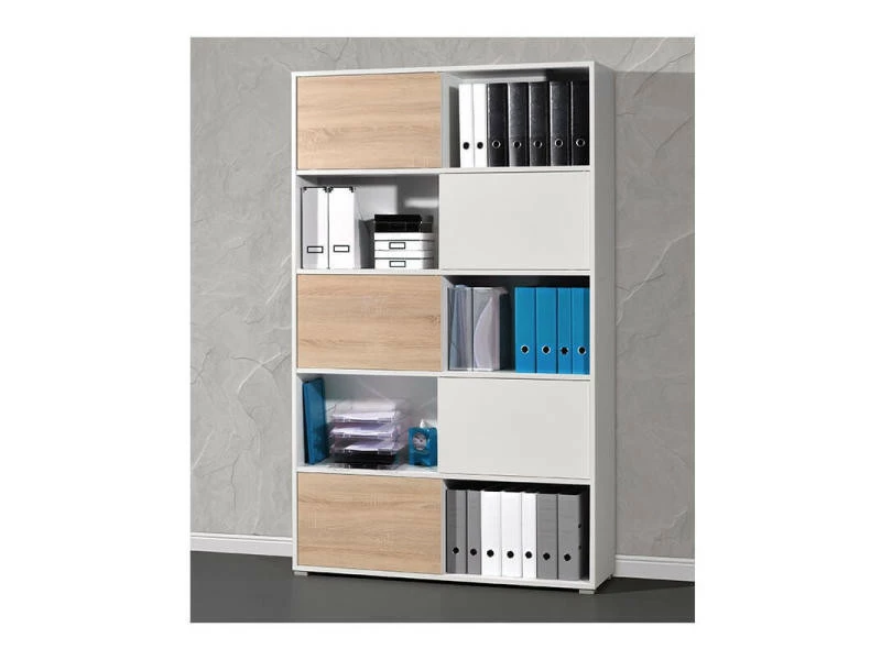 Profondeur en CM : 35 / Hauteur en CM : 196 / Structure : MDF laminé blanc et chêne sonoma / Poids : 79.4kg / A monter : Oui / Garantie : 1 an