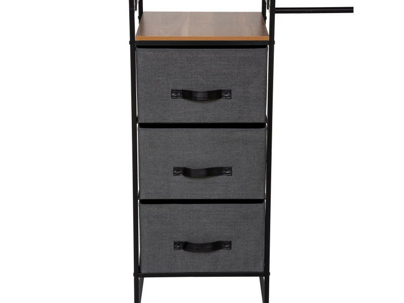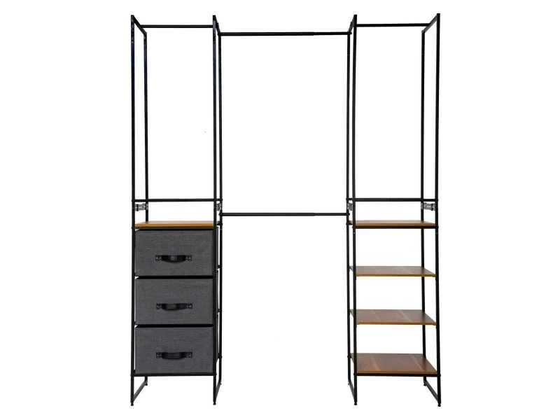 Avec pas moins de quatre tiges pour suspendre les vêtements et 8 étagères, vous ne manquerez jamais d’espace. Fabriqué en métal et MDF.