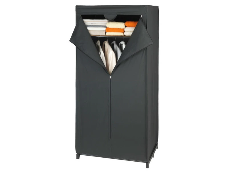 Vie mobile facile – avec la garde-robe de la série Deep Black, vous créerez rapidement et de manière flexible des nouvelles possibilités de rangement pour les robes, manteaux ou chemises. Le grand compartiment de rangement au-dessus de la tringle à vêtements offre un espace de rangement supplémentaire pour les pulls, des serviettes ou des accessoires. Utilisé comme un dressing ou partie des installations dans la chambre d’invités ou chambre à coucher, il s’intègre de manière décorative dans l’ambiance de la chambre grâce à sa couleur noir sobre. L’installation facile sans outils s’avère particulièrement avantageuse lors de déménagements fréquents ou comme un atout majeur pour les secondes résidences des travailleurs pendulaires et navetteurs. Le châssis robuste en métal du garde-robe peut être rangé facilement. Le revêtement extérieur est fait d’un film plastique de facile d’entretien (PEVA) et protège efficacement contre la poussière. Lorsqu’il n’est pas utilisé, il peut être plié facilement pour économiser de l’espace. La fermeture éclair à l’avant garantit un accès facile.