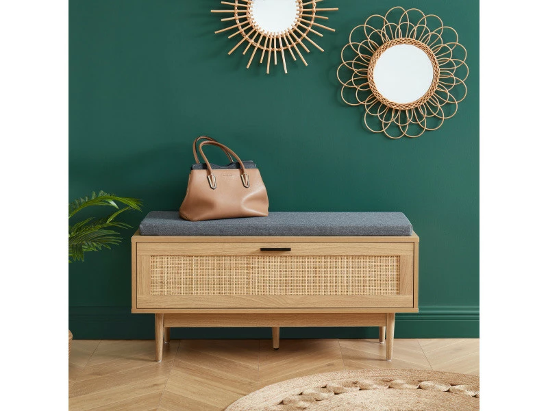 On aime : ses finitions raffinées et son habillage en cannage naturel.