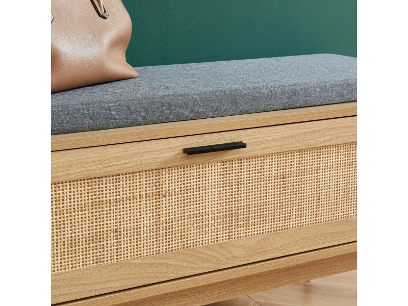 Besoin de mieux organiser votre entrée ? Optez pour ce magnifique banc à chaussures AMANA en cannage naturel. Il vous permettra d’y stocker jusqu’à 12 paires de chaussures tout en vous offrant la possibilité de vous asseoir confortablement pour vous chausser.