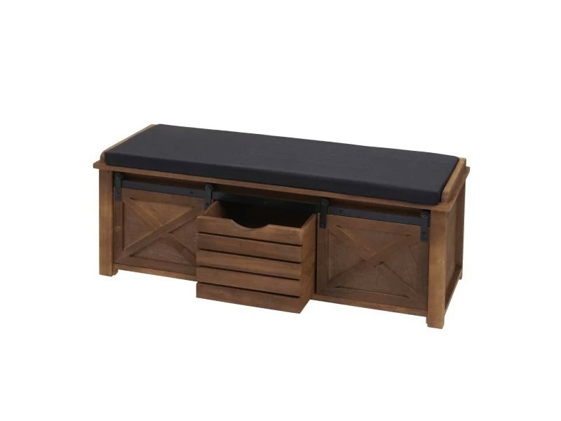 Le banc au design vintage n’est pas seulement attrayant visuellement, mais dispose également de nombreux espaces de rangement facilement accessibles grâce aux ingénieuses portes coulissantes. De plus, le banc dispose d’une boîte en bois pour des options de rangement optimales.