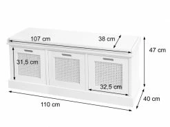 – Cette commode Ă siège ne convainc pas seulement par son design simple. Grâce Ă ses trois boĂ®tes de rangement pratiques, elle dispose de nombreuses possibilitĂ©s de rangement pour vos objets quotidiens tels que sacs, parapluies ou autres.