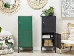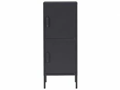 Armoire de rangement en acier avec 2 portes et 4 étagères. Le meuble parfait pour le rangement adaptable à tout environnement, du bureau à la chambre. Grâce à sa taille compacte, cette armoire noire graphite s’agence n’importe où. Fabriquée en métal, elle présente une bonne stabilité et son revêtement électrostatique en poudre, lui assure une résistance élevée à la corrosion. Derrière la façade à deux portes se trouvent quatre étagères spacieuses sur lesquelles vous pouvez ranger des documents, des livres ou d’autres objets.