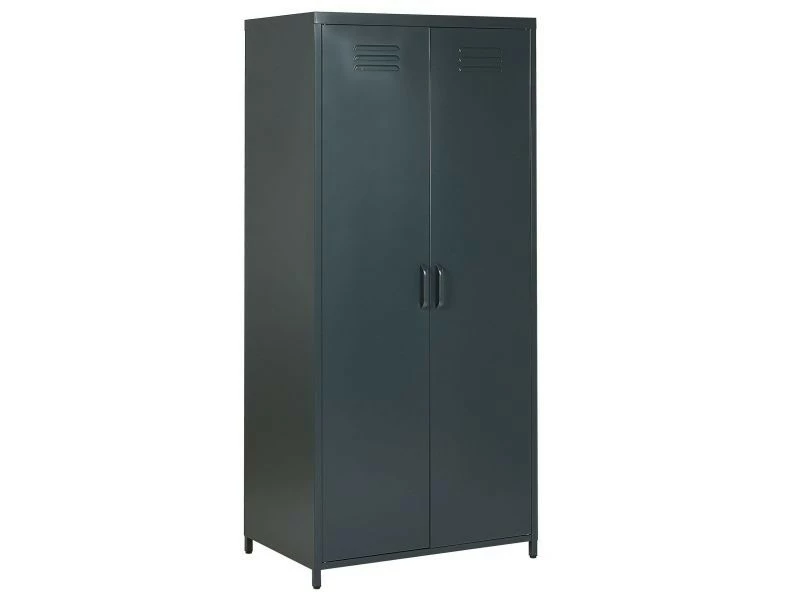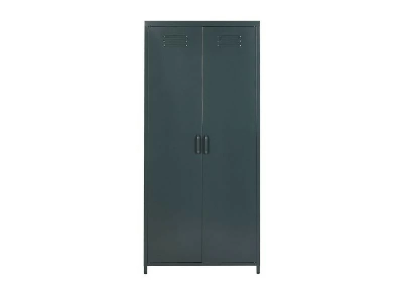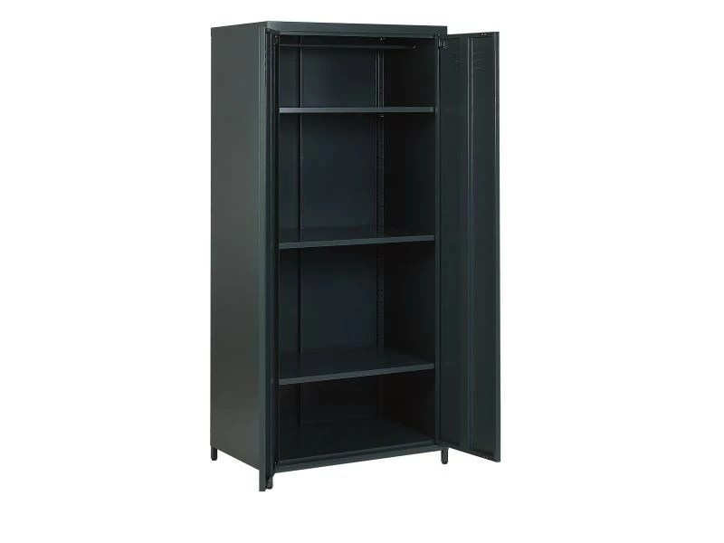 Vestiaire de rangement en acier au look industriel. Une armoire en acier design et pratique ! Grâce à la construction stable et soudée, même les objets les plus lourds peuvent être placés sur les étagères. Celles-ci étants amovibles, elles vous permettent de ranger quelque chose de plus grand dans la grande armoire. De plus, cette armoire en acier est idéal comme séparateur de pièce, dispose de fentes de ventilation et est très facile à nettoyer grâce aux surfaces lisses. Tous vos sacs à main, chapeaux ou documents sont entre de bonnes mains derrière les 2 doubles portes et à l’abri des regards indiscrets. Vos vêtements peuvent être accrochés au rail du vestiaire pour les protéger des plis et de la poussière.