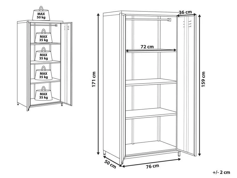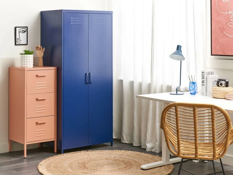 Vestiaire de rangement en acier au look industriel. Une armoire en acier design et pratique ! Grâce Ă la construction stable et soudĂ©e, mĂŞme les objets les plus lourds peuvent ĂŞtre placĂ©s sur les Ă©tagères. Celles-ci Ă©tants amovibles, elles vous permettent de ranger quelque chose de plus grand. De plus, cette armoire en acier est idĂ©ale comme sĂ©parateur de pièce, dispose de fentes de ventilation et est très facile Ă nettoyer grâce aux surfaces lisses. Tous vos sacs Ă main, chapeaux ou documents seront bien rangĂ©s derrière les doubles portes et Ă l’abri de la poussière. Vos vĂŞtements peuvent ĂŞtre accrochĂ©s Ă la tringle du vestiaire.