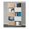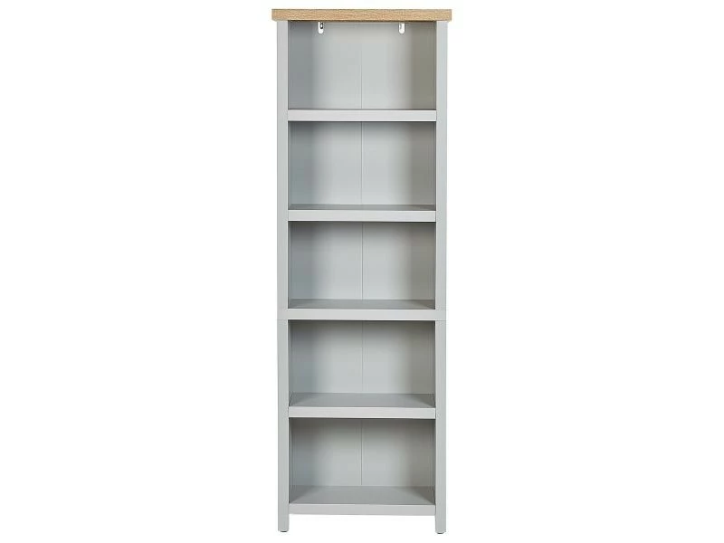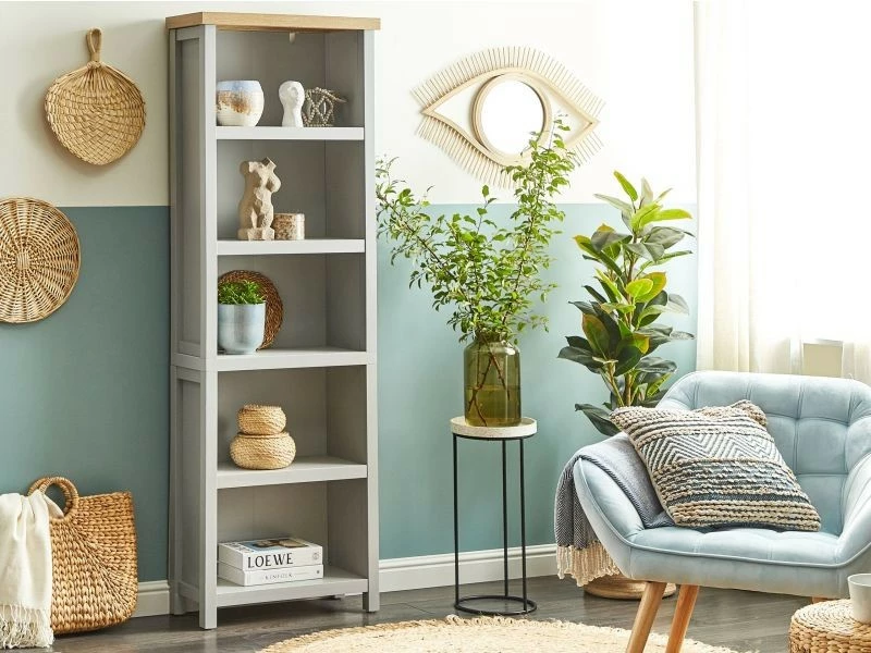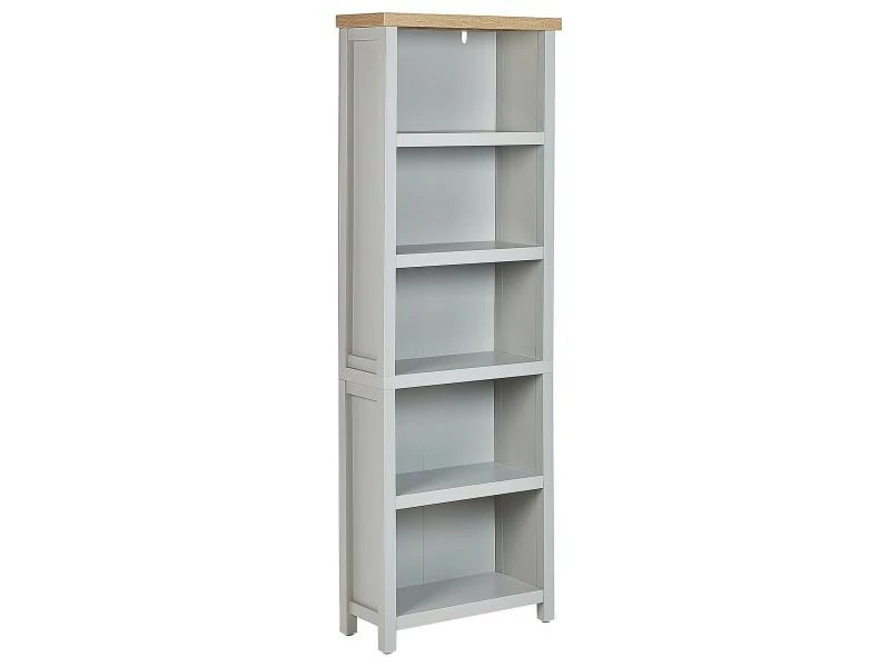 Rangement à 5 étagères. Avec son design épuré et sa couleur intemporelle, cette bibliothèque s’intègre parfaitement à tous les intérieurs scandinaves et traditionnels. Dotée de cinq étagères pratiques, elle offre beaucoup d’espace pour ranger des livres ou exposer des décorations. L’étagère est fabriquée en panneau de particules et finie dans une teinte gris clair, ce qui en fait un meuble polyvalent pour un salon ou une chambre à coucher.