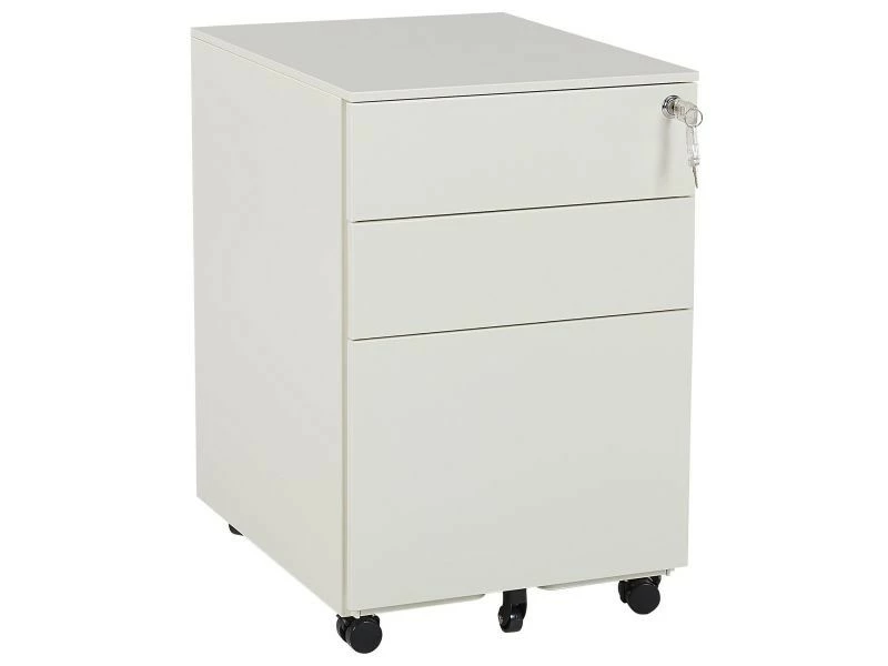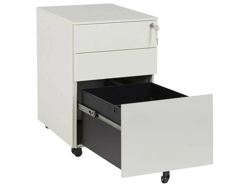 Rangement de bureau Ă roulettes en acier. Ce caisson Ă roulettes de taille compact va se faire une place de choix dans votre bureau ! Sa structure mĂ©tallique robuste peut ĂŞtre facilement dĂ©placĂ©e près de vous ou cachĂ©e sous votre bureau selon votre besoin. Tous vos documents confidentiels sont entre de bonnes mains dans le tiroir verrouillable, Ă l’abri de la poussière et des regards. Grâce Ă sa construction stable et soudĂ©e, ce caisson de rangement accueillera mĂŞme les objets les plus lourds peuvent ĂŞtre placĂ©s sur l’Ă©tagère.