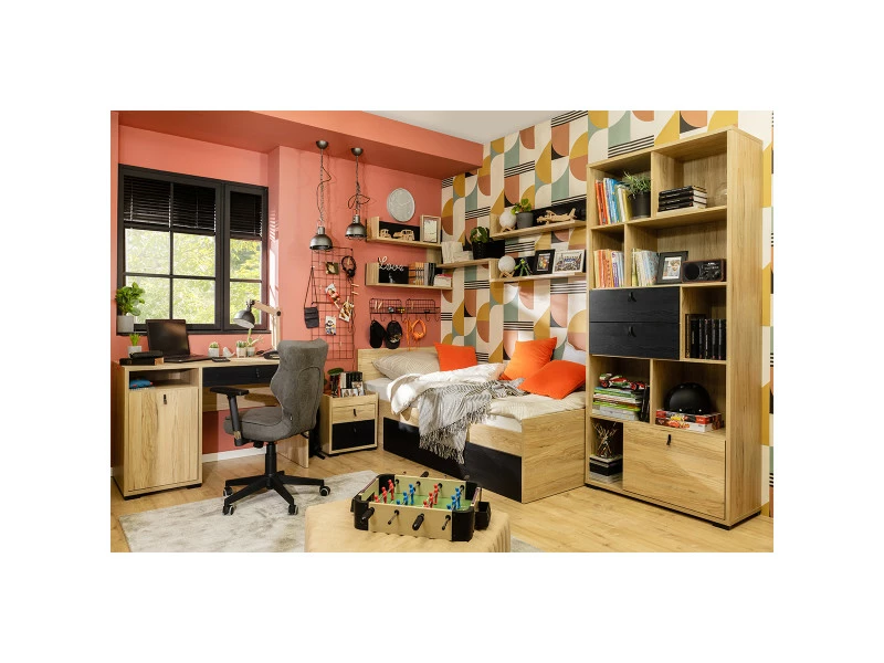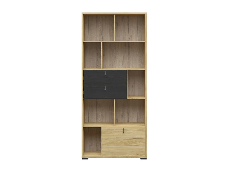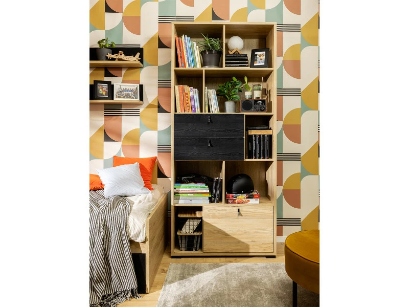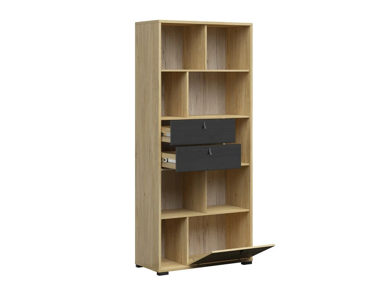 Bibliothèque 1 porte 2 tiroirs Dena Bois et Noir